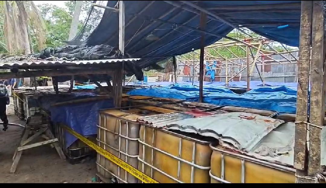Dari lokasi ini, aparat mengamankan 26.000 liter solar hasil olahan, dua tangki berkapasitas masing-masing 11.000 liter, serta satu tangki besar berisi 40.000 liter BBM. Polisi juga menemukan delapan unit truk colt diesel yang telah dimodifikasi sebagai penampung minyak mentah, 47 tandon kosong, serta berbagai peralatan seperti pompa, selang, dan limbah hasil produksi.
